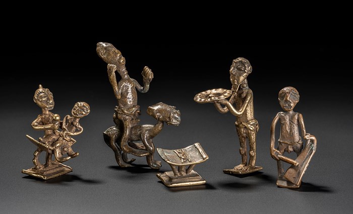 Les poids à peser ont d’abord été développés pour réguler et mieux contrôler le commerce de l’or. Cependant, ils ont simultanément revêtu d’autres usages et porté un poids symbolique important dans la vie quotidienne et politique des Akan.