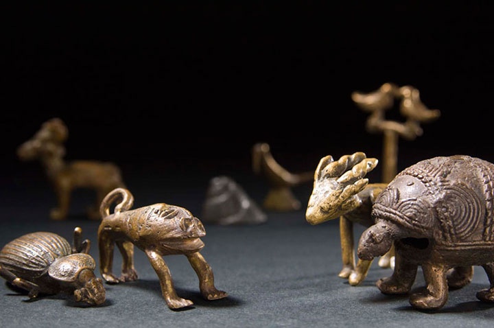 Le paquet qui contenait le contenu que nous appelons aujourd’hui poids d’or était fait de peau d’animal. Dans le paquet, les Akan plaçaient des figurines et d’autres accessoires, notamment des pierres. Plus de 100 animaux sont représentés et la plupart d’entre eux sont associés à des proverbes akans bien connus.