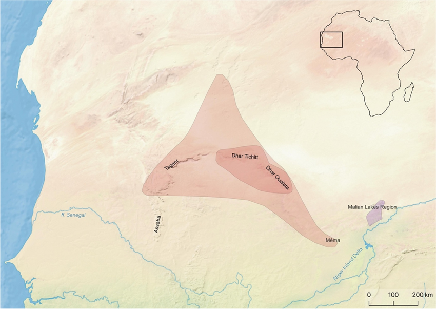 La tradition néolithique de Tichitt est sans doute la première société complexe à grande échelle d’Afrique de l’Ouest. S’étendant sur une superficie de 200 000 km2, elle était centrée sur les escarpements de dhar tichitt et dhar walata et s’étendait sur les régions de dhar tagant et dhar nema dans ce qui est aujourd’hui le sud-est de la Mauritanie. La région a été colonisée de manière permanente par des communautés agro-pastorales après 2200-1900 avant J.-C., après une période de colonisation semi-permanente qui a commencé vers 2600 avant J.-C.. Ces groupes agro-pastoraux, qui ont été identifiés comme des locuteurs proto-soninkés de la famille linguistique mandé, vivaient dans des structures en maçonnerie de pierres sèches construites dans des enceintes agrégées, ils élevaient des bovins, des moutons et des chèvres, cultivaient le millet perlé et fondaient du fer.
